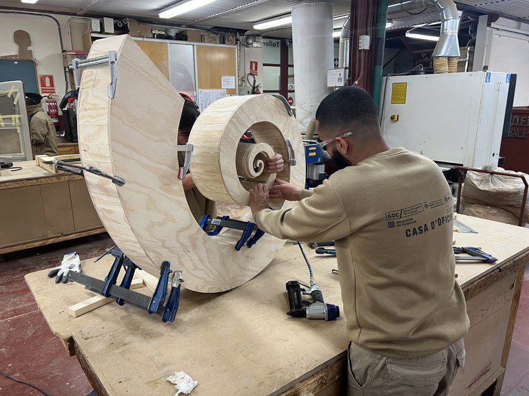 El projecte Casa d'oficis consta de dues fases de 6 mesos de durada. La primera fase és de caràcter formatiu i les persones participants tenen dret a la percepció d’una beca d’assistència. A la segona fase són contractades per l’IMO i complementen la seva formació amb un contracte de formació en alternança.